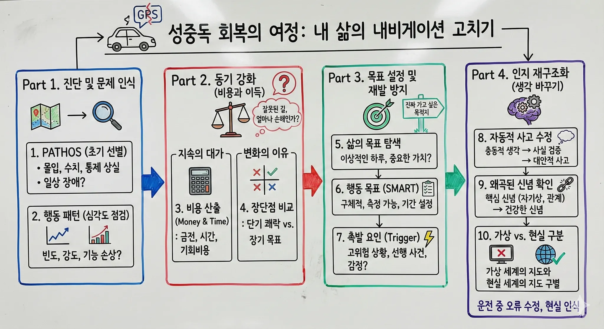 중독의 악순환 사이클 설명 (갈망-행동-일시적 만족-죄책감-갈망)
